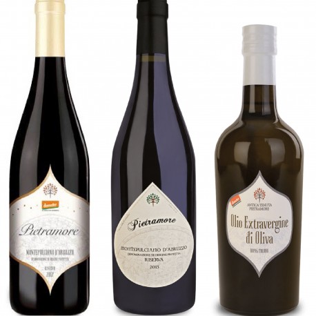 Une discovery box des plus intéressantes, comme notre sélection de vins et d’une huile d’olive de Marche (voir aussi dans notre boutique en ligne). Cette trilogie provient des Abruzzes, de l’Antica Tenuta Pietramore qui adopte la culture bio-dynamique. Deux Montepulciano d’Abruzzo, deux Riserva et deux bouteilles d’huile dôlive 100% italienne! Un régal et un beau cadeau!